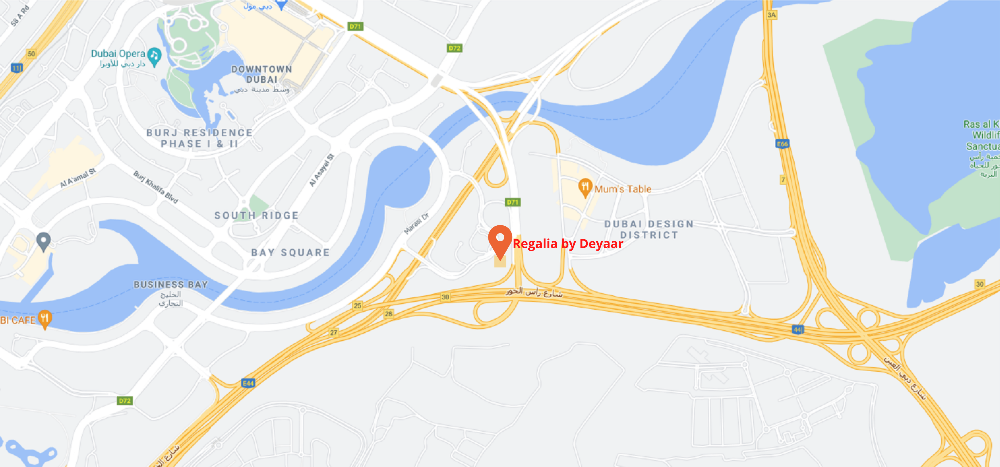 70-этажная жилая башня REGALIA DEYAAR расположена в центре Дубая в непосредственной близости от Burj Khalifa, в районе Бизнес-Бэй, одном из самых престижных районов, где находятся популярнейшие в мире развлечения, социальные и культурные достопримечательности.