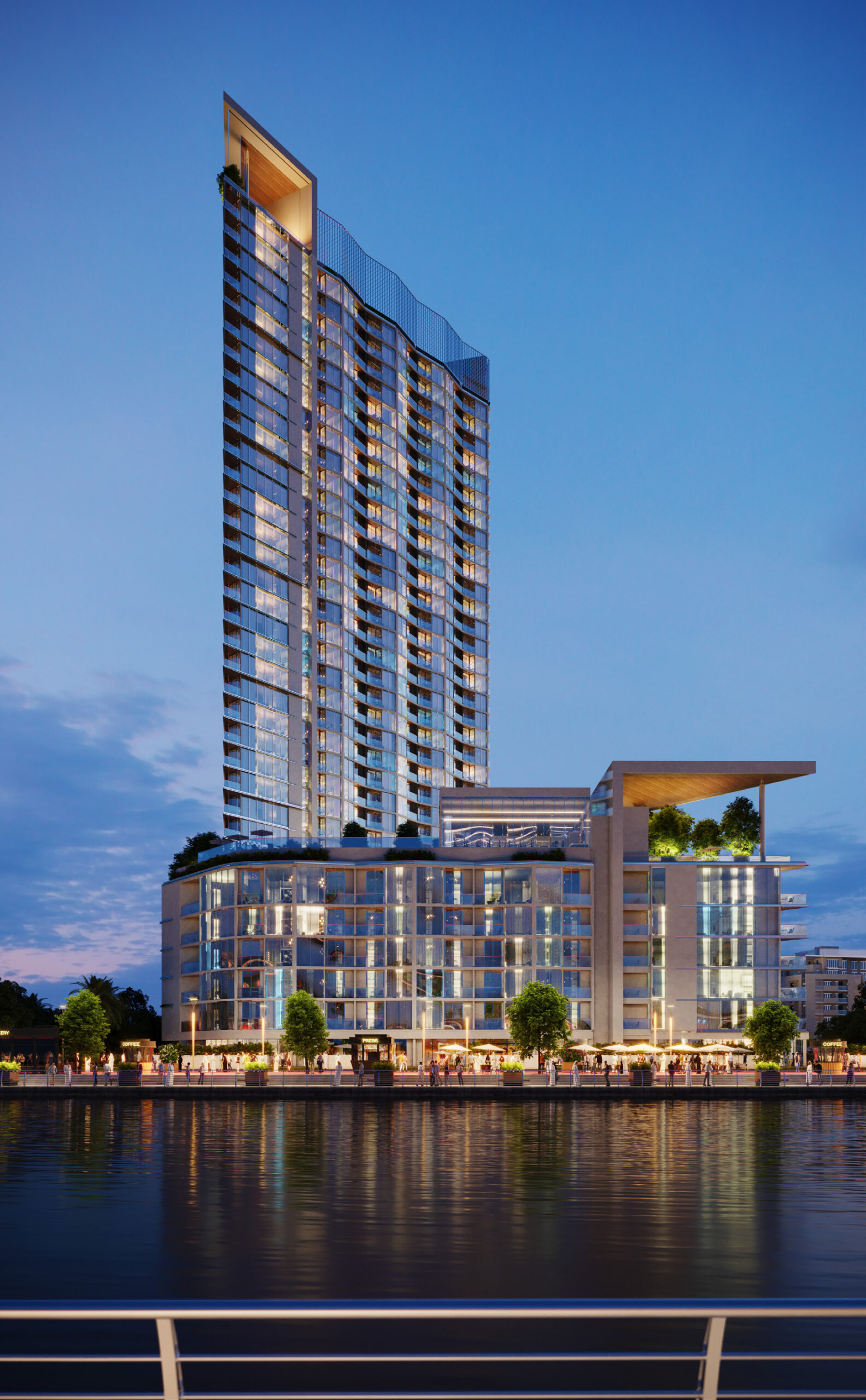 Красивое здание Waves в районе Waterfront District возвышается над набережной длиной 1,8 км, которая служит